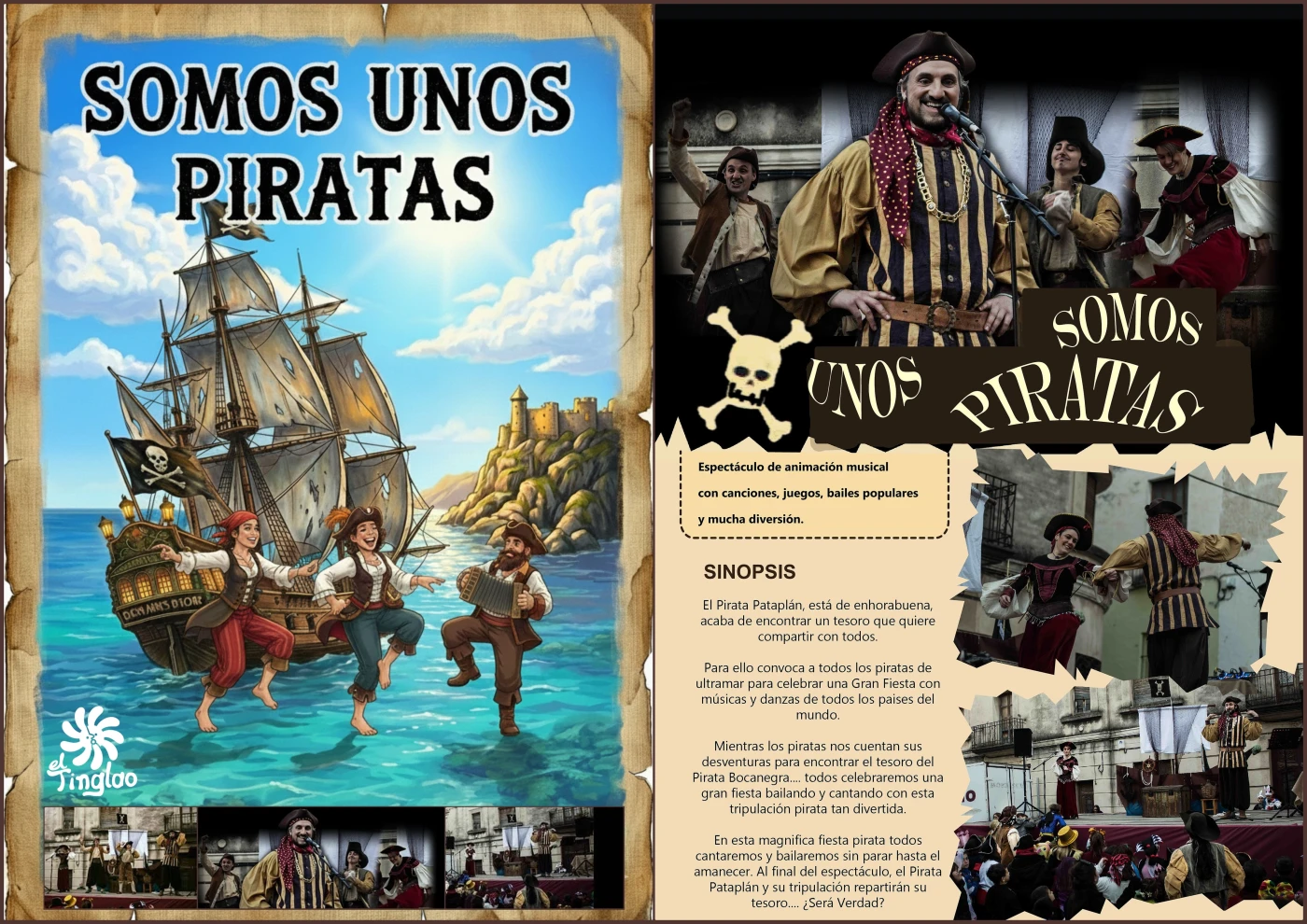 Mientras los piratas nos cuentan sus desventuras entre todos celebraremos una gran fiesta pirata bailando y cantando con esta tripulación pirata tan divertida. En esta magnifica fiesta pirata todos jugaremos, cantaremos y bailaremos sin parar hasta el amanecer. Al final el Pirata Malapata y su tripulación repartirán su tesoro.... ¿Será Verdad?